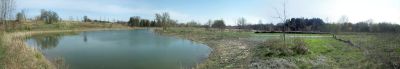 The pond is designed to receive storm water at the northerly or deep end and it outflows at its southerly or shallow end into the creek. This human built aquatic feature allows most sediments to precipitate into the pond thus minimizing the chance of silting the creek bottom. Occasionally the pond has to be dredged. The pond itself is habitat for sedges and cattails that are essential in trapping many pollutants enhancing the cleansing value of the pond. Some of the wildlife seen at the pond include Tree and Rough-winged Swallows, Green Herons, Belted Kingfishers, Green Frogs, various dragonflies, Red-bellied Dace, and water striders.
