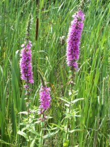 Summer: | Look for tall plants with purple spikes of flowers. This is Purple Loosestrife a plant that came from Europe and is displacing many of our native plants in our wetlands. |